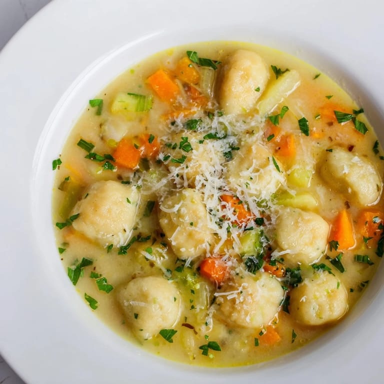 Pin A comforting soup featuring pillowy gnocchi, velvety butternut squash, and aromatic herbs in a savory broth—perfect for chilly evenings.