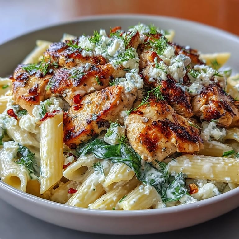 - Return the chicken to the skillet, lower the heat to medium-low, and add your cooked pasta, crumbled feta, Greek yogurt, and that reserved pasta water. Toss everything together gently until the sauce coats the pasta—it should look creamy and luxurious, not stiff or separated.
