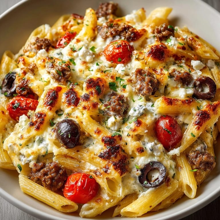 My favorite part about this recipe is the creamy yogurt sauce layered in before baking it melts into the pasta and gives every bite that vibrant tang I remember from Greek markets As a kid my mom would always sneak a few extra olives on top just for me I carry on this habit and it never fails to make me smile