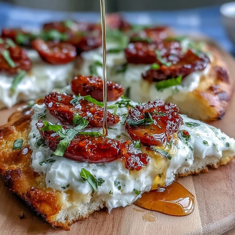 Pin Honey Peach Burrata Toast perfectly balances creamy, fresh burrata with the juicy sweetness of ripe peaches, all nestled on crunchy rustic sourdough. This vibrant combination is elevated by a luscious drizzle of honey and the brightness of fresh basil, creating a simple yet elegant dish that's ideal for a light spring brunch or appetizer. Ready in just 10 minutes, it’s a quick way to impress any guest with seasonal flavors and beautiful presentation.