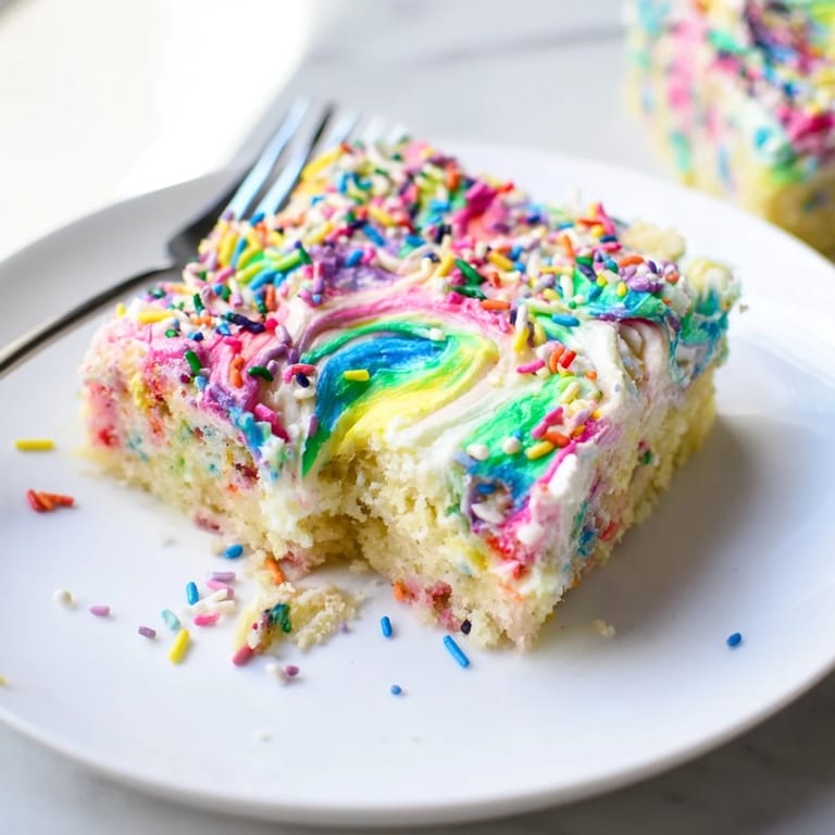 - Dollop or swirl frosting onto cooled cake using a spatula, embracing imperfect swirls and texture. Scatter generously with rainbow sprinkles.