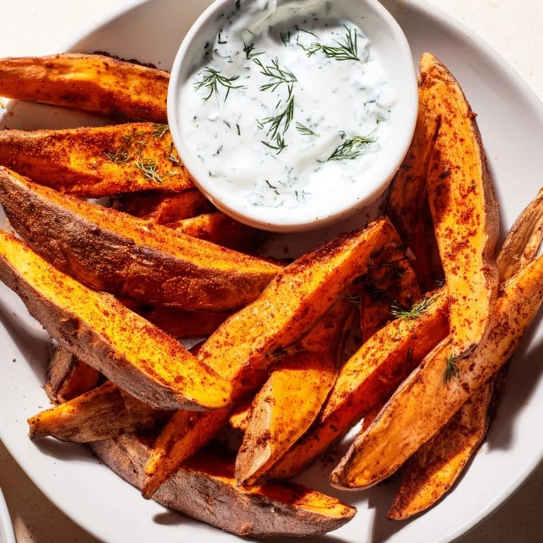 I first made these wedges on a family movie night and they disappeared quickly. The yogurt dip adds a fresh, zesty contrast and really elevates the sweet potatoes.