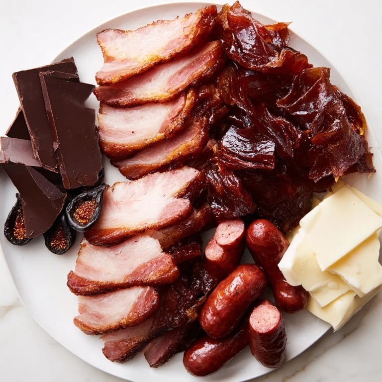 The secret to a memorable charcuterie board isn't just flavor—it's contrast. Dark against pale, crispy against creamy, sweet against savory. Every element on this board was chosen to create tension that makes your palate more alive. The dark chocolate isn't random; it's there because its bitterness makes the creamy cheeses taste creamier. The bourbon-glazed bacon's saltiness makes the fig's sweetness more pronounced. Intentional pairing transforms a collection of good ingredients into something greater than the sum of its parts.