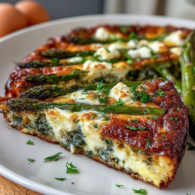 Pin My neighbor stopped by one Saturday morning with a bundle of asparagus from her garden, and I realized I had nothing to do with it except the usual roasted-on-a-sheet-pan routine. That's when I thought about eggs—something I always have on hand—and how a frittata could turn those tender spears into something that felt like a celebration rather than a side dish. The goat cheese came later, almost by accident, when I was cleaning out the fridge and found it lingering in the back, begging to be used.