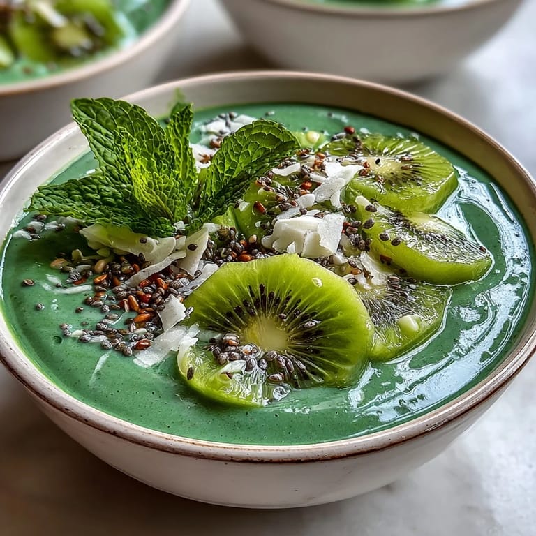 - Kiwi slices: The brightness here contrasts beautifully against the green smoothie, making every spoonful visually interesting.