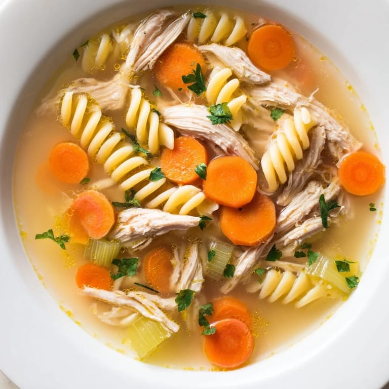 Pin A cozy, homemade classic that cooks itself while you get on with your day. Tender shredded chicken, soft vegetables, and twirly noodles come together in a warm, comforting broth that tastes like its been simmering all afternoon.