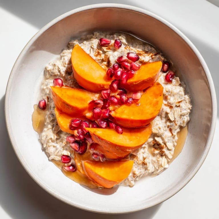 Pin A creamy, wholesome breakfast featuring sweet persimmon, juicy pomegranate, and nutrient-rich chia seeds for a vibrant start to your day.