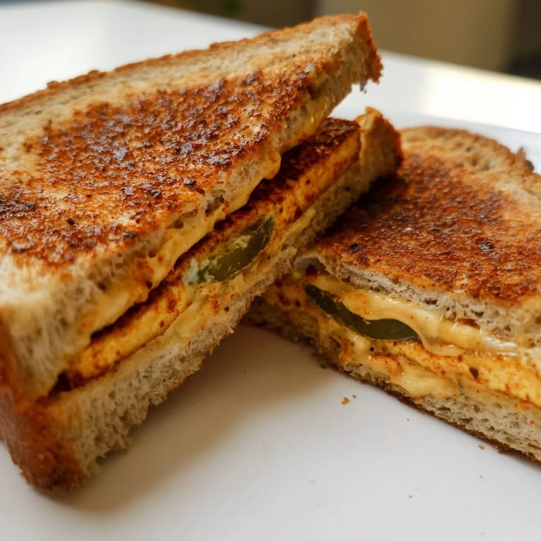 Pin I was halfway through a disappointing vegan lunch when my roommate walked in with a bag of crispy tofu and started talking about texture, heat, and melted cheese like it was the most obvious thing in the world. That conversation changed everything, because grilled cheese has always been my comfort food, and suddenly I realized nobody said it couldn't be bold, spicy, and completely plant-based. Now when I make this sandwich, I'm always chasing that exact moment when the crust turns golden and the cheese gets just soft enough to ooze.